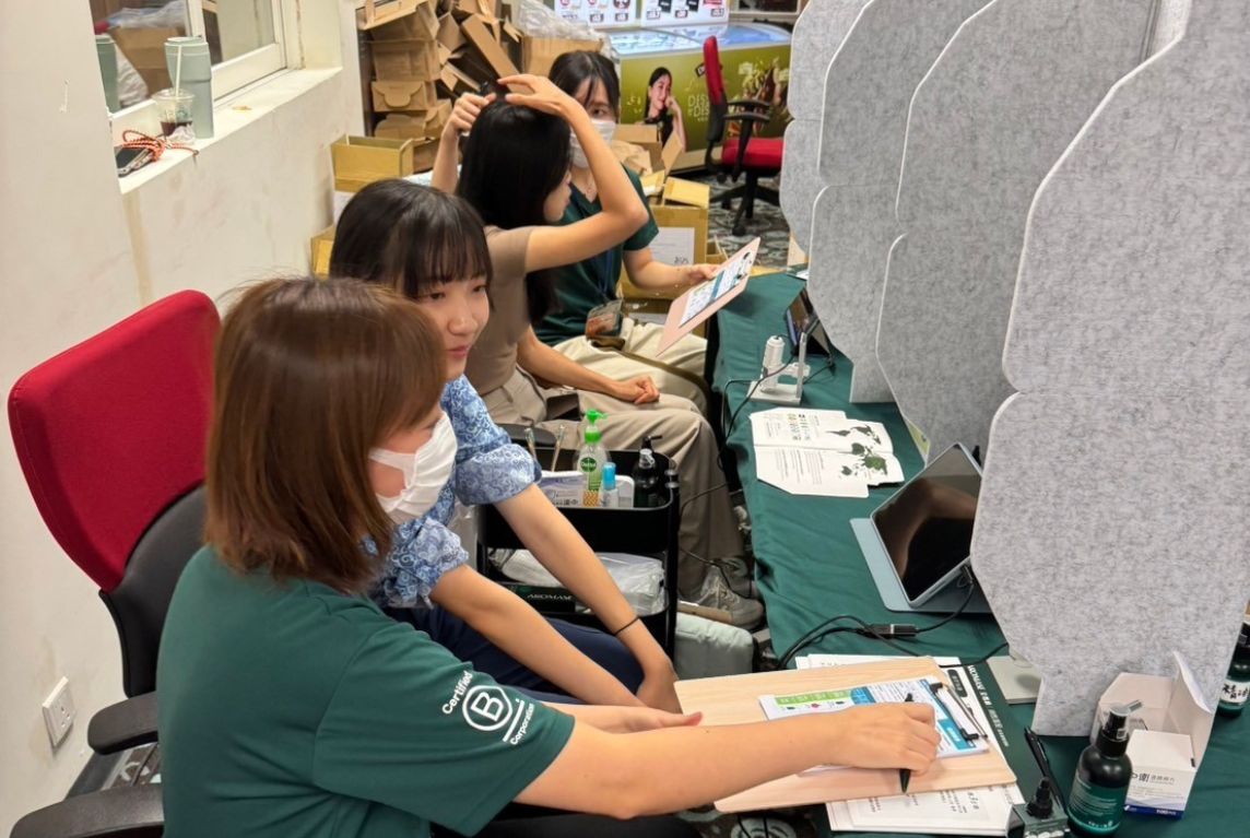 We observed that caregivers often neglect their well-being. This isn’t the case everywhere, but we recognize that when caregivers maintain their energy, those they care for can also benefit from that. We introduced this idea and extended it beyond nursing homes and hospitals to the Hong Kong Disneyland Resort. We conducted scalp examinations and the AROMASE team shared scalp care knowledge with caregivers and Disneyland staff.