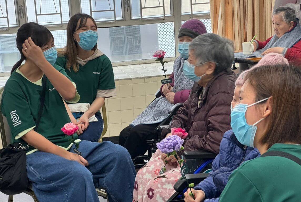 Starting in May 2024, we have expanded our mission to Hong Kong. The AROMASE Hong Kong team visited the #Guo Yuzhang Mrs. Nursing Home at Jen Tze Hospital (仁濟醫院郭玉章夫人護理安老院). We crafted handmade flowers as gifts for the elderly, spreading joy and giving caregivers a much-needed short break. ( Learn more about AROMASE B+ Corner)